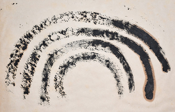 The drawings seen here, and throughout this article, were completed in 1908 by an East Liverpool, Ohio resident named Harold Barth. Barth spent a year transferring 200 petroglyph images etched on the banks of the Ohio River near his home (an area known as the “Antique Sculptures” by early explorers) onto paper. When dams were built in the area in the 1920s, the petroglyphs disappeared beneath the water. Prior to 2024, the drawings were housed at the Museum of Ceramics in East Liverpool (which is where the author of this article photographed them).
